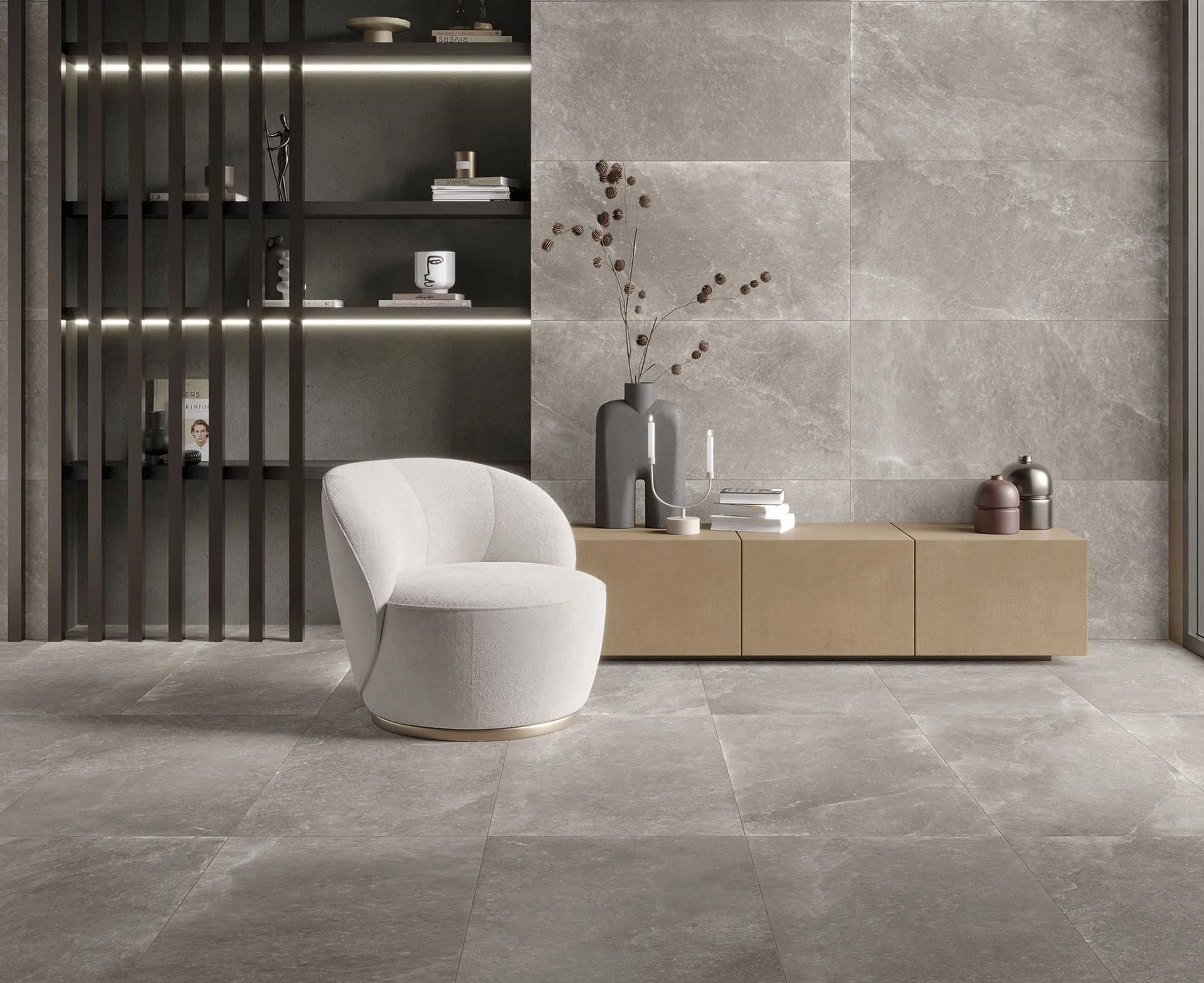 Perfect for both classic and contemporary interiors, River Tiber is available in three refined colours and three versatile sizes – 60x120 cm, 60x60 cm, and 60x30 cm – ideal for creating seamless, harmonious surfaces across floors and walls.